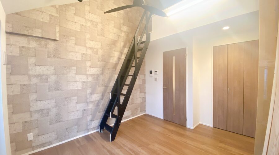 部屋ごとにアクセントクロスやキッチン扉を変えたり、おしゃれな姿見鏡や木製の固定ロフト階段を施主支給して頂いたりと、オーナー様の情熱と工夫で大きく雰囲気も変わり、一層おしゃれな仕上がりになりました。
